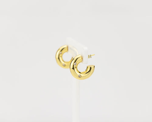 Bold puff hoops, CZ thick puffy earring, chunky gold hoops, mid-century vintage, statement hoops, hollow c hoops, thick hoops, zirconia hoop
