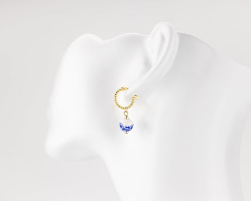 Porcelain flower mini hoops, ceramic floral, bead pendant, 925 twist hoop, drop earrings, gold filled, blue flower, china, vintage, 14KGF