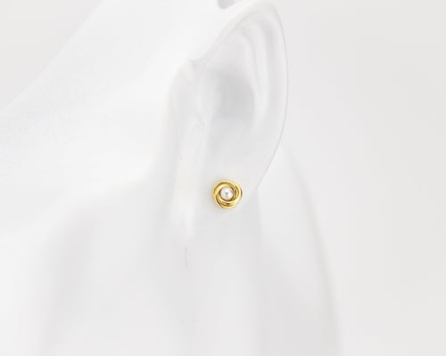 Entwined pearl studs, circle pearl studs, infinity hoop, dainty, small, tiny, minimalist, gold pearl earrings, bridesmaid, bridal gift, 925