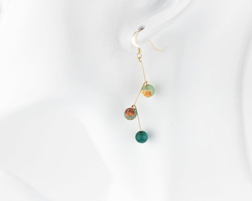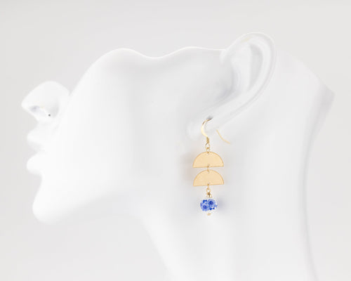 Porcelain flower dangle earrings, 14K gold filled, geometric, ceramic floral, bead pendant, drop earrings, blue, green flower, vintage,14KGF